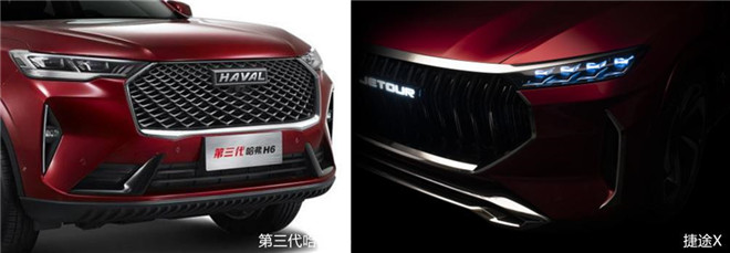第三代哈弗H6采用了名為“弦韋”的設(shè)計(jì)語言,最大的改變?cè)谟谡囷L(fēng)格更加激進(jìn)和年輕化,比如大尺寸中網(wǎng)以及側(cè)面的凹凸效果等,力量感十足;奇瑞捷途X作為脫胎于概念車設(shè)計(jì)的全新車型,從最近曝光的部分設(shè)計(jì)來看,激進(jìn)的風(fēng)格同樣明顯,直瀑式的多邊形中網(wǎng)尺寸足夠大,棱角分明的前臉線條塑造出了不俗的力量感。