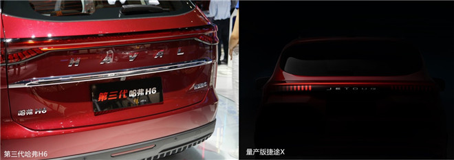 車尾部分,第三代哈弗H6和奇瑞捷途X不約而同地采用了貫穿式尾燈的設(shè)計(jì),這種設(shè)計(jì)風(fēng)格在量產(chǎn)車型上漸成主流,對(duì)檔次感的提升立竿見影,點(diǎn)亮后的識(shí)別度非常高,對(duì)夜間行車安全也有一定增益。