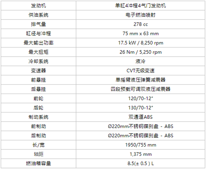 2020款Vespa GTS SuperSport 300 – 主要技術(shù)參數(shù)