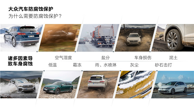 大眾汽車車型需要在全球多個市場抵御由鹽、灰塵、霜凍、高溫、潮濕抑或淤泥等因素造成的腐蝕。為此,大眾汽車在其生產網絡中包括中國在內的14個國家招募了數十名車輛防腐蝕保護經理。在每一處生產基地,產品防腐蝕保護都是一項團隊工作,需要研發、生產和質保部門間的密切合作,協同開展全面的測試。