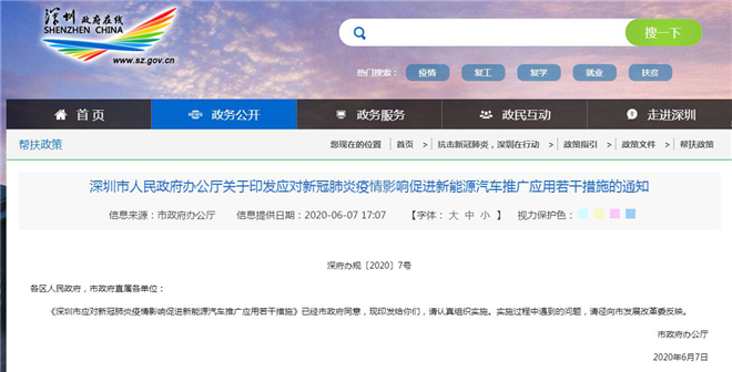 深圳市促進新能源汽車推廣應用若干措施的通知