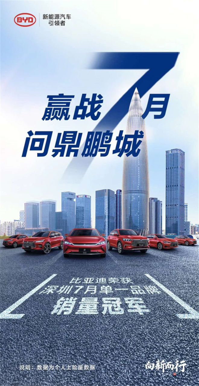 今年7月,在車市回暖和一系列促消費政策助力下,時隔一年之后,比亞迪重返深圳市單一品牌銷量冠軍,個人上險量達2108臺,是深圳汽車市場7月唯一上險量突破2000臺的車企。