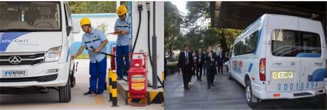 【上汽大通MAXUS FCV80(左圖)、聯(lián)合國開發(fā)計劃署署長阿奇姆施泰納試乘FCV80(右圖)】