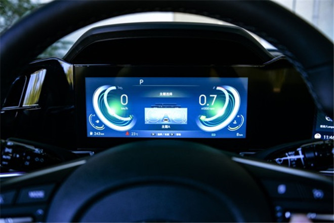 最讓人眼前一亮人的是10.25英寸全液晶儀表盤+10.25英寸中控屏的聯屏設計,堪稱同級獨有,屏幕的觸感反應也很靈敏,看起來很前衛。印象深刻的是,中控屏的角度還設計了向駕駛席傾向10°的傾斜,便于駕駛者操作使用,非常人性化。