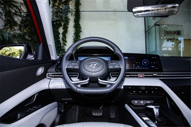 這次第七代伊蘭特在駕駛艙部分也進行了別出心裁的設計,以駕駛員為中心的沉浸式座艙布局,個性化十足,低矮、寬敞的結構設計從車門一直延伸到中央扶手,像飛機駕駛艙一樣將駕駛員包裹在其中,很有未來科技感。再加上D形方向盤的裝點,堪比跑車的標配,應該會非常受年輕人歡迎。