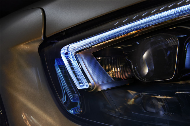 新一代長軸距E級車的貫穿式腰線如“天際線”一般宏偉流暢,令車身曲線呈現修長立體的雕塑美感,盡展渾然天成的磅礴氣勢。全新“鋒眉皓目”LED大燈設計將E級車經典的“四眼大燈”創新傳承,以犀利的折角勾勒出LED日間行車燈的“鋒眉”造型,創新性地融入銀鉤鐵畫的中國書法意境,令車燈于優雅中盡顯蒼勁有力的鋒芒。懸浮式LED光源如同E級車的“皓目”,圓潤明亮的高光點亮時,令E級車目光如炬。
