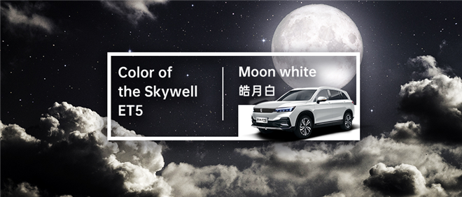 2020年4月8日,年度最大超級月亮登場。在凌晨0點左右,月上中天、亮度最大。在深邃的夜空和稀薄的云層映襯下,月亮散發著柔和的瑩光和晶瑩的色澤,皎潔皓白。天美設計師由此迸發靈感,調取月色的皓白融入天美ET5車身上,讓純粹的白中帶上細膩光澤,并取名——皓月白。