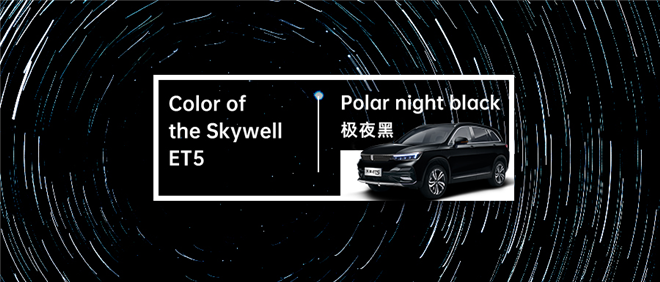 69°N,33°E,俄羅斯城市摩爾曼斯克,這里極夜時間長達40天,你可以盡情欣賞漫漫長夜,繁星點點襯托下的純粹的黑。天美設計師在此迸發靈感,調取星光點點的純粹黑融入天美ET5車身上,讓純粹的黑泛起點點金屬光澤,由此取名——極夜黑。