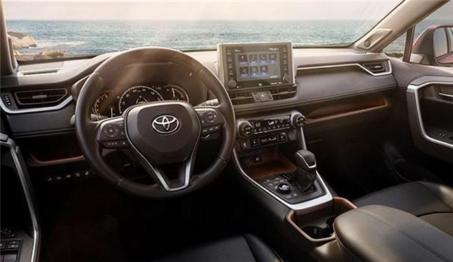 新款RAV4的內飾設計是在中規中矩布局中透露些層次感,中控臺上的液晶屏非常顯眼,三輻式多功能方向盤和機械+液晶的儀表盤,提升內部質感;精致的銀色鍍鉻飾條,則增添了視覺享受。