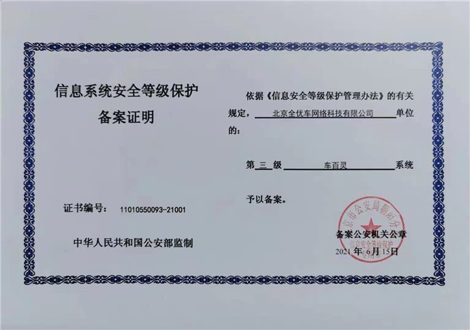 車百靈之保險管家獲得了“監管級別”的等保三級認證(對非銀行機構信息系統安全的最高級認證證明)。在信息保護、安全審計、通信保密等諸多方面,車百靈系統都達到行業最高標準。比如,車百靈系統可以有效的維護和防御系統被入侵和攻擊,及時發現并預警安全漏洞,并迅速恢復功能、修復故障,防止信息泄露,從而保護客戶的信息安全。