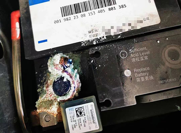 梅雨季節雨量充沛,空氣中水分含量高,這些夾雜著酸性物質以及各類雜質的水分,極其容易與蓄電池正負電極金屬端柱發生氧化反應,形成綠色的氧化物,看上去就像蓄電池長起了綠色的“毛”。并且,長時間的腐蝕,會影響蓄電池正負電極導電性能,導致車輛無法正常啟動;嚴重時還會發生電線短路,損壞車輛蓄電池正負極連接線,增加汽車的不安全隱患。