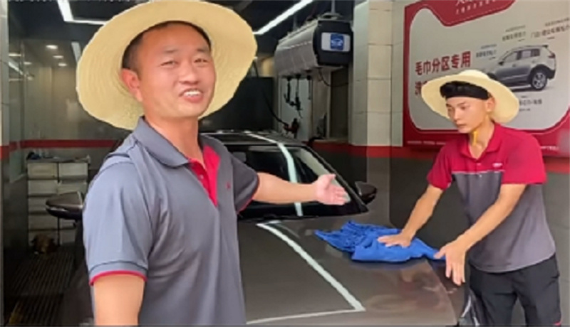 炎炎烈日,他和店員經(jīng)常戴著草帽為用戶洗車,人稱“帽子哥”。