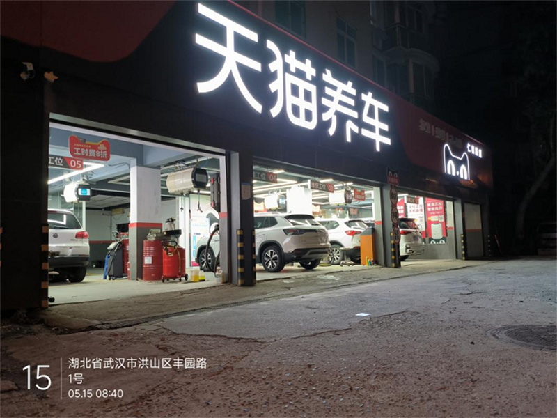 夜晚營業(yè)中的天貓養(yǎng)車仁和路店