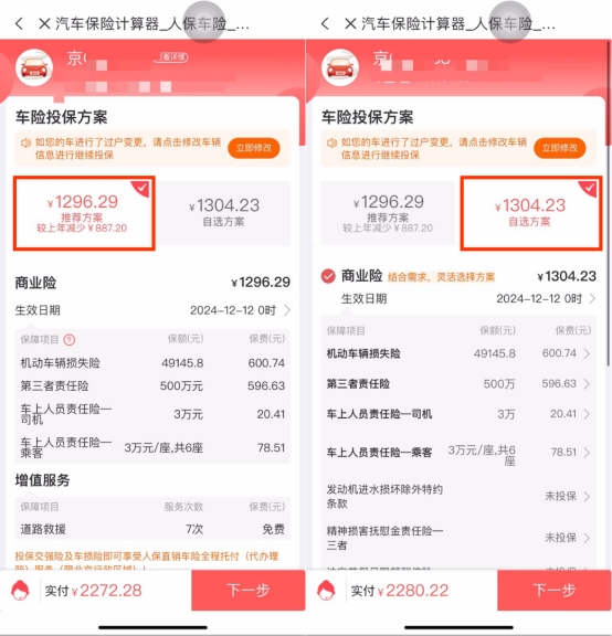 以往,消費者在線下渠道選擇車險服務時,通常會多方詢價、比價,往往投入了很多時間和精力卻難免踩坑。如今,選擇線上車險服務,只需知道車輛價格,就能估算車險費用,非常方便快捷。更重要的是,在線下投保車險時,最終投保的方案是固定的,缺少了主、附險之間的組合選擇。而在類似中國人保APP這樣的平臺選擇車險服務,智能推薦方案或是自定義方案,每一步都實時報價,消費者根據自身需求可靈活組合,大大滿足了個性化車險需求。