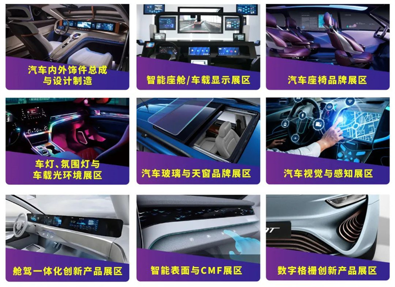 展會創新規劃了9大主題展區,集中展示內外飾總成、座椅、智能座艙、車載顯示、汽車塑料件、裝飾件、方向盤、門板、頂棚、車身覆蓋件、車身結構件、外觀件、智能汽車電子、被動安全、保險杠、后視鏡、車燈與車輛照明以及應用領域新材料、新技術、新設備、新工藝,匯聚全球頂尖車企、供應商和行業專家,打造集展示、商貿、技術交流于一體的頂級平臺!