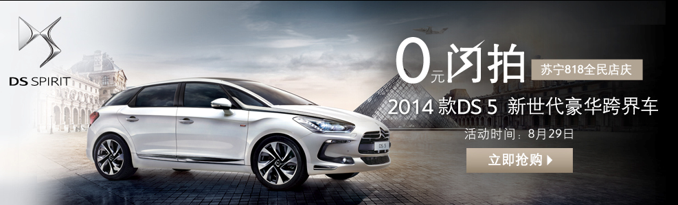 作為目前國內Z具規模及影響力的電商平臺之一,此次蘇寧易購舉辦的818蘇寧大促活動將集中眾多知名品牌的優質產品,而DS品牌作為中國豪車市場的新生力量,也將在此次購物節上為廣大消費者帶來DSZ新的兩款國產車型產品,分別是一臺THP160 豪華版2014款DS 5和一臺THP160 豪華版DS 5LS。屆時,這兩款正在熱銷的DS車型將在蘇寧易購818購物節期間,通過閃拍的形式銷售,而網拍價格更是比官方指導價格優惠了20%,為廣大消費者帶來更超值優惠的購車價格。
