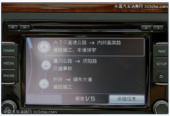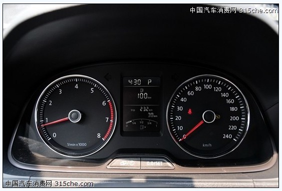 7英寸液晶屏可以通過兩側按鍵和手指觸摸同時操作,另外還提供了藍牙免提功能和車載導航地圖。儀表盤的設計雖然比較簡約,但是很大氣,白色燈光背景配上紅色指針非常醒目。